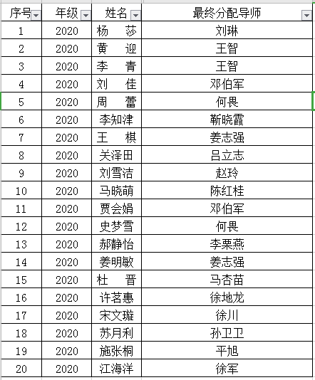永利集团304am登录2020级硕士研究生导师拟分配结果