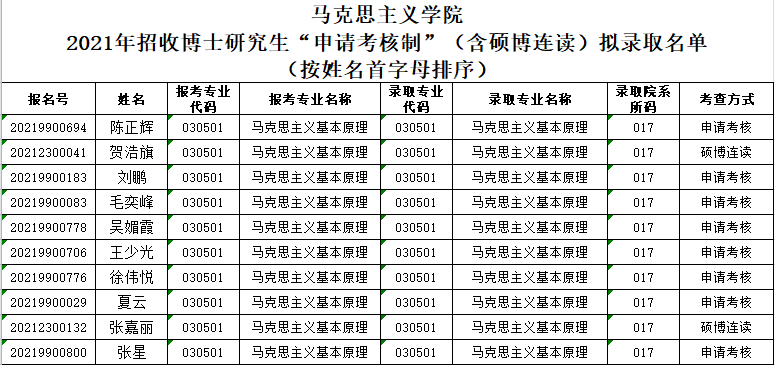 永利集团304am登录2021年招收博士研究生“申请考核制”(含硕博连读)拟录取名单