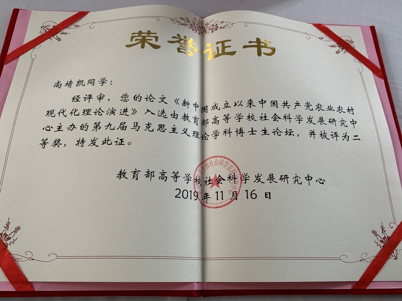 11月16日,由教育部高等学校社会科学发展研究中心主办、教育部习近平新时代中国特色社会主义思想研究中心基地(西南大学永利集团304am登录)承办的“中国特色社会主义理论体系研究工作推进会暨第九届马克思主义理论学科博士生论坛”在重庆召开。教育部社科中心主任王炳林致辞并作主题报告。各专项课题负责人、基地代表和论坛获奖论文作者代表参加会议。会上对“第九届马克思主义理论学科博士生论坛”获奖论文进行表彰,永利官网博士生尚靖凯撰写的《新中国成立以来中国共产党农业农村现代化理论演进》荣获二等奖。